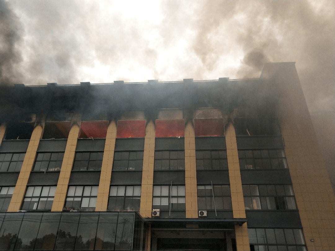 经现场消防救援人员勘察发现,发生在1号楼的4层,明火+滚滚浓烟从窗口涌出,并有向5层蔓延趋势。
