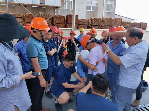 此次应急演练分为两个演习科目:一是应急救援装备实操演练,包括防护服穿戴、有限空间设备操作、灭火器消火栓使用等;二是危化品泄漏事故应急救援演练。