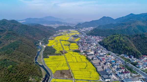4月的安吉灵峰街道碧门村,整个村庄被金黄的油菜花田衬托着,一眼望去,美不胜收。