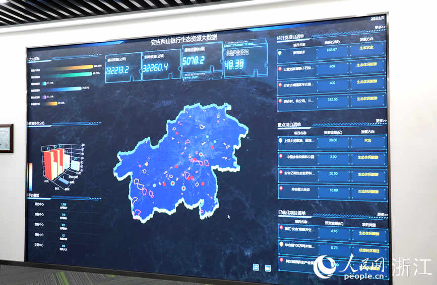 “南門老街是安吉‘兩山銀行’今年新落地的項目之一。”站在安吉“兩山銀行”生態資源大數據平台的屏幕前,安吉“兩山銀行”辦公室主任張子翔介紹,在之前排摸出的全縣資源“家底”的基礎上,今年,安吉“兩山銀行”堅持數字賦能,強化資源整合,並對交易平台進行了系統升級。“通過疊加整合、動態更新289個數據圖層,形成了以資源規劃、生態環保、農業農村數源數據為基礎,以GEP核算為支撐的‘生態資源管理應用一張圖’,全縣生態資源一清二楚。”張子翔說,“通過大數據平台,客商能夠快速地了解哪些是可流轉開發的林地、集體經營性建設用地等,哪些是受到規劃保護的資源區域,從而精准匹配最合適的項目資源。”同時,“兩山銀行”平台現已接入“浙裡辦”“浙政釘”,逐步實現了掌上辦事一網通達、生態資源一鍵錄入。